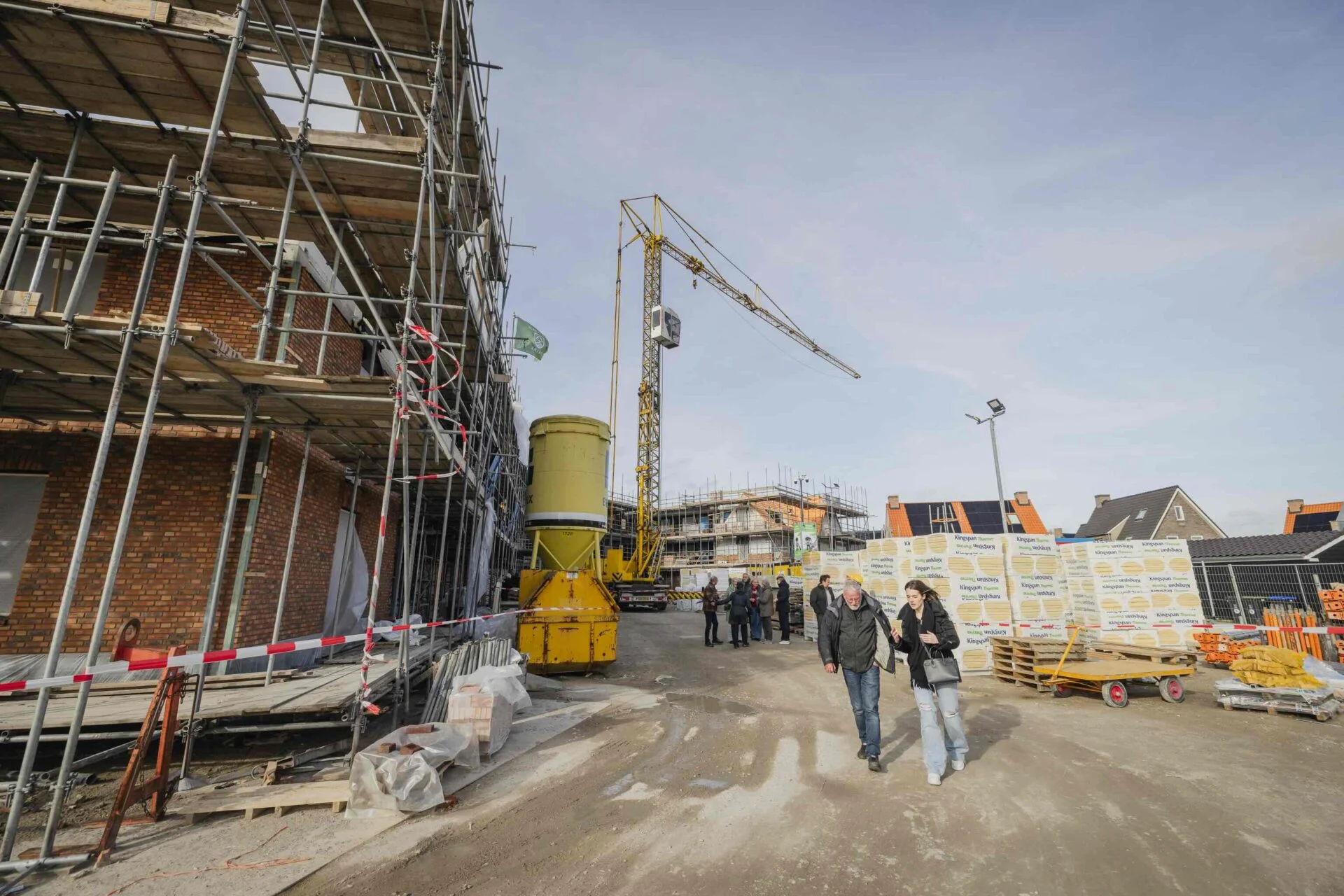 Voor Martijn van Sabben was het vooral een moment om samen stil te staan bij wat er al is bereikt. “Ik ben blij dat we het hier met zoveel kopers kunnen vieren,” vertelde hij tijdens zijn toespraak. Daarbij keek hij niet alleen terug, maar ook vooruit. De eerste dakplaten liggen inmiddels op het gebouw en de volgende stappen zijn al in voorbereiding. “Vanaf volgende week gaan ze in de huurappartementen de vloeren aanbrengen. Een week of twee later komen de kozijnen erin.”