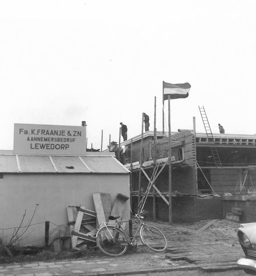 In de jaren na de oorlog groeit Fraanje zichtbaar in schaal en ambitie. Waar eerder vooral kleinere herstel en timmerwerkzaamheden werden uitgevoerd, verschuift het werk steeds meer naar complete bouwprojecten. In 1949 realiseren we in Lewedorp een woonhuis met schuur, een van de eerste volwaardige woningen die door Fraanje wordt gebouwd.
