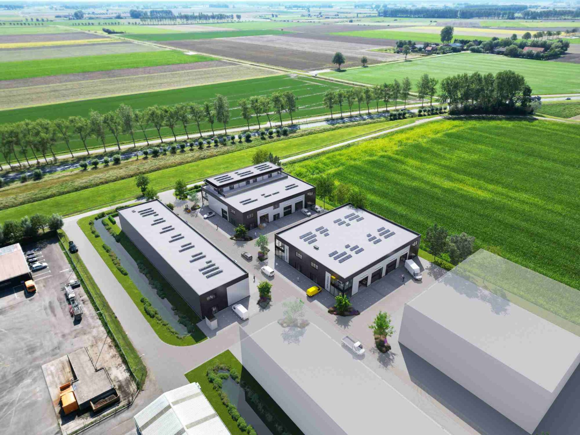 De eerste fase bestaat uit 21 bedrijfsunits, met oppervlaktes van circa 100 m² tot 585 m², verdeeld over één, twee of drie bouwlagen. Iedere unit is modern vormgegeven, met oog voor representativiteit én duurzaamheid. Gasloos, hoogwaardig geïsoleerd en onderhoudsarm — klaar voor de toekomst.